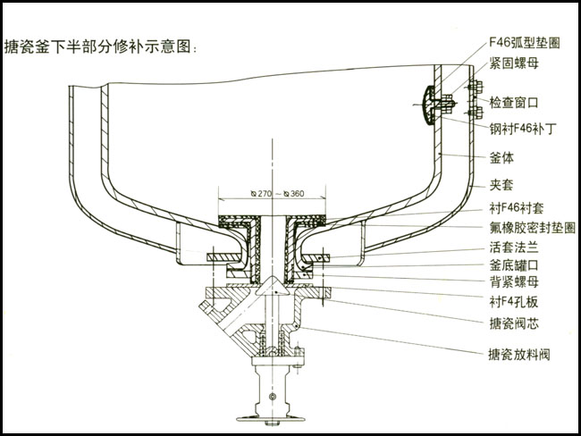 Schematic diagram of the lower half of repair enamel kettle